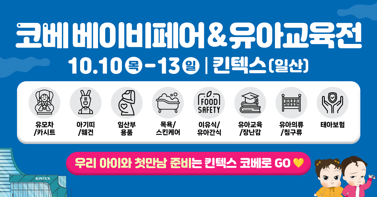 우리 아이와의 첫만남 준비 A~Z까지! 킨텍스 코베 베이비페어&유아교육전과 함께 하세요 수도권 최대규모 베이비페어! 킨텍스 코베 베이비페어가 10월, 여러분을 찾아갑니다! 더욱 풍성해진 이벤