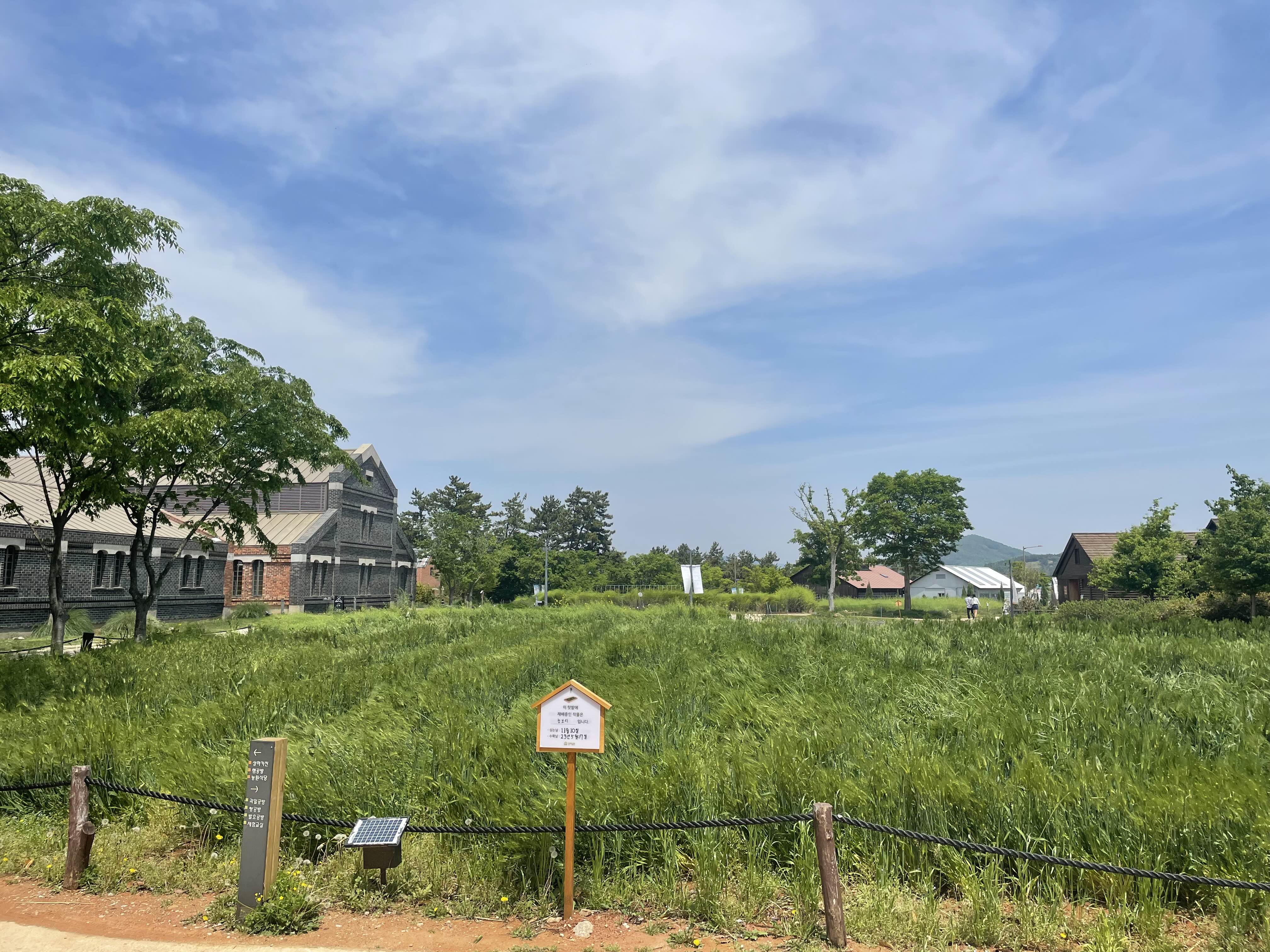 입구를 통해 들어오자마자 청보리 밭이 펼쳐집니다.