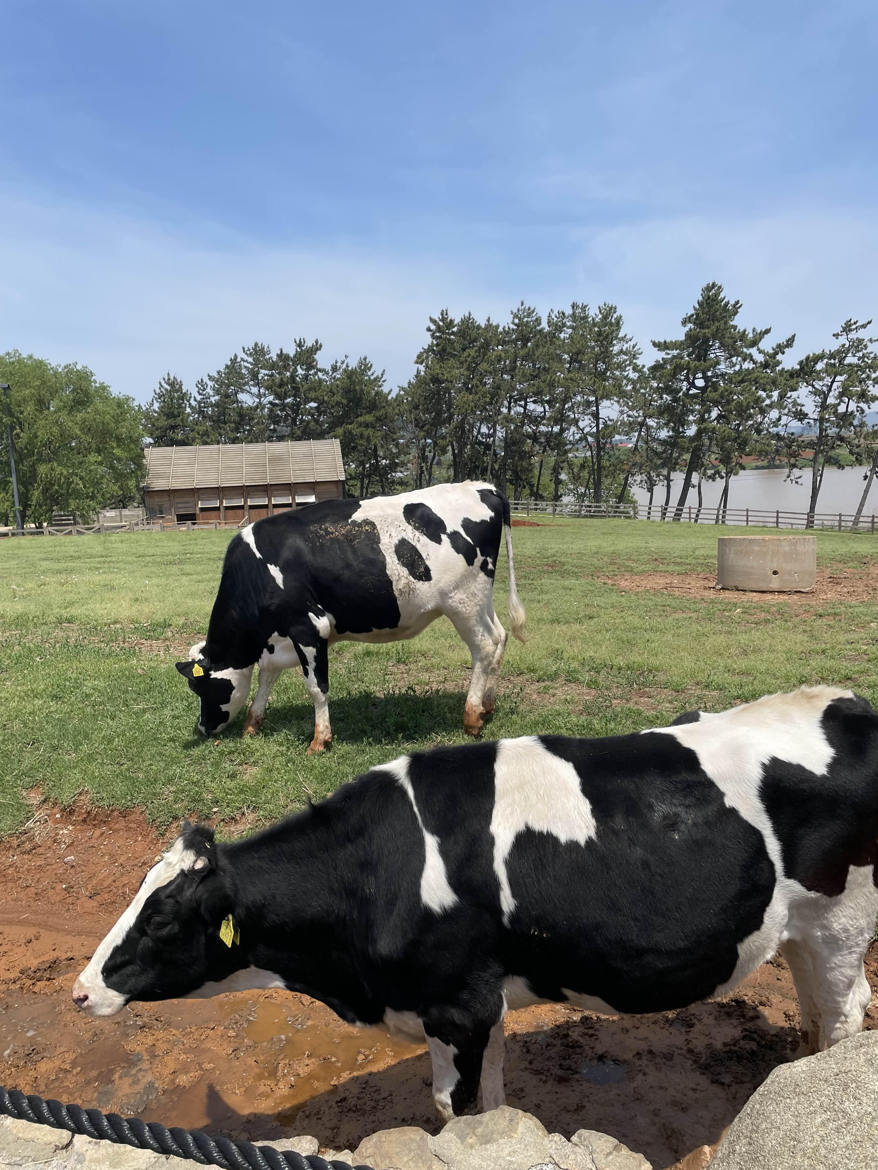 상하농원의 대표 마스코트라고 할 수 있는 젖소들 입니다. 매번 나와있는 것은 아니고 그때 그때마다 풀어둘 때가 있고, 축사에 있을 때가 있습니다.