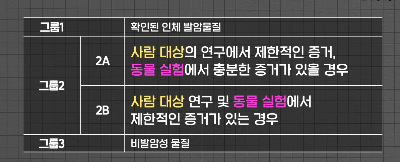 WHO 발암물질 해당군을 보면 아래와 같습니다.
